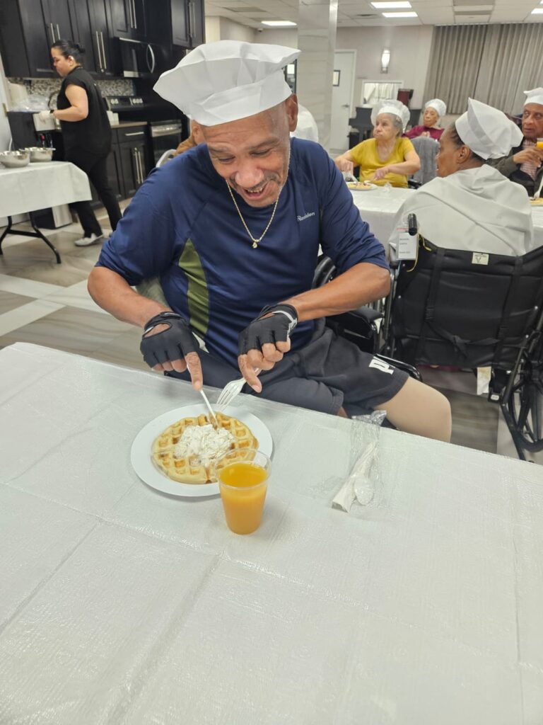To end on a sweet note, residents joined a waffle baking session where they followed a simple tutorial, made their own waffles, and enjoyed eating them fresh and warm.