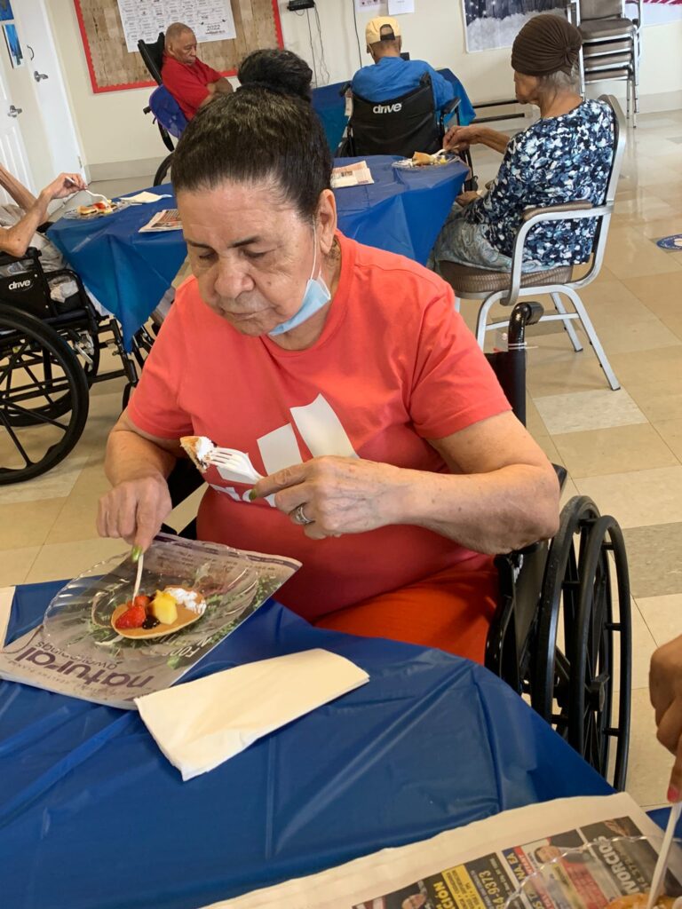 Happy National Pancake Day! Our residents got to celebrate with a pancake buffet and customize their delicious flapjacks with fruits, chocolate syrup and whipped cream. Everyone enjoyed their delicious, sweet treat.