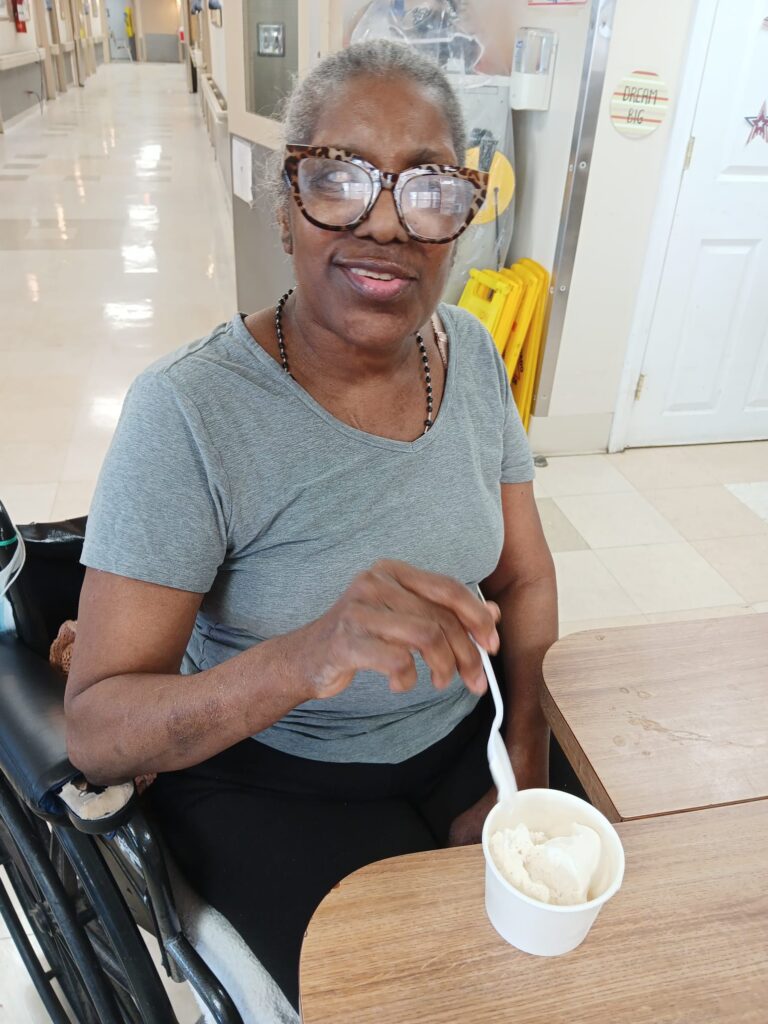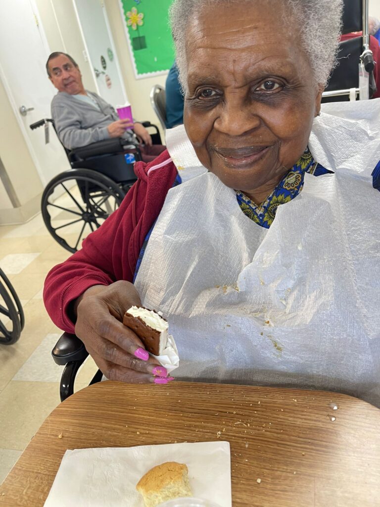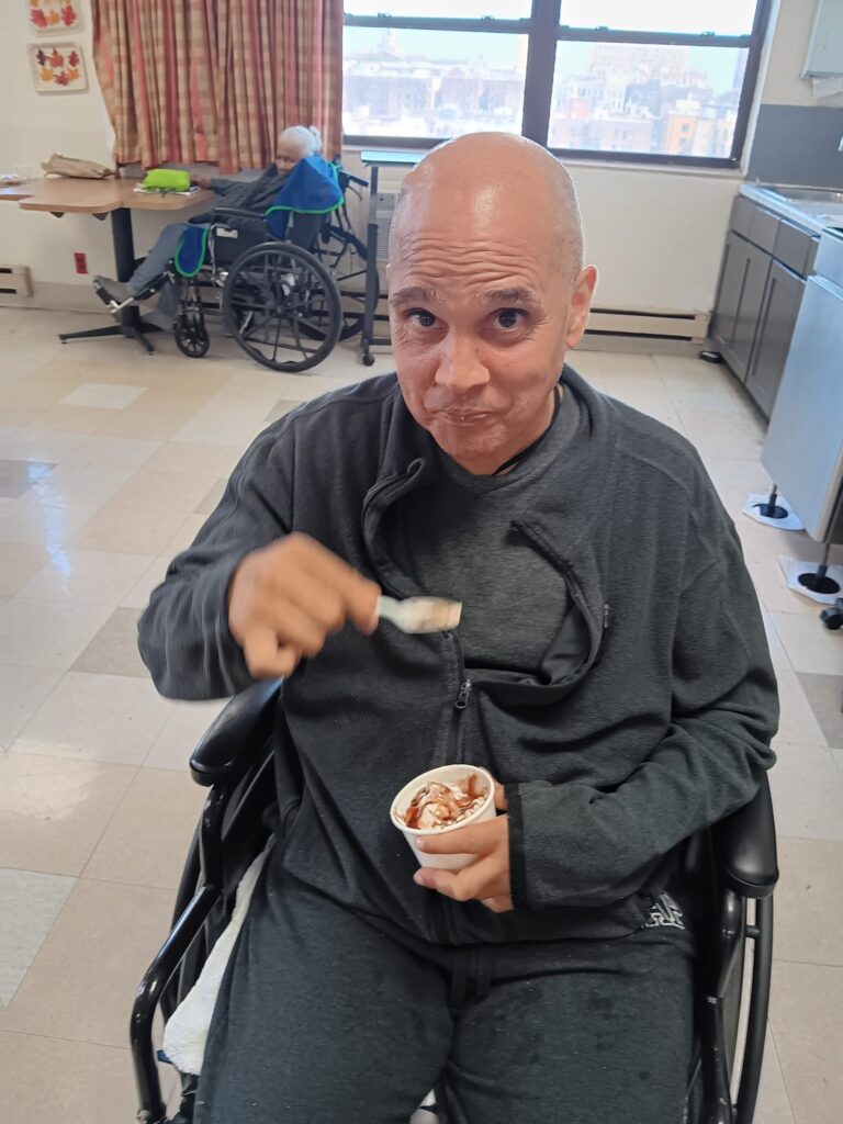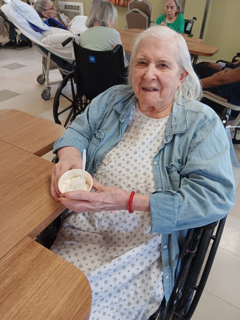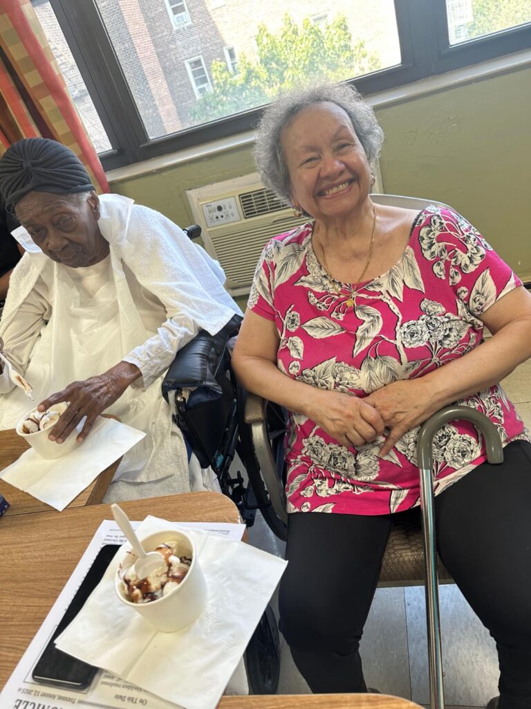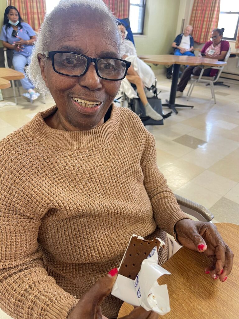 Back inside the facility, a playful Ring Pop sugar rush added color and fun to the afternoon, followed by a delightful food delight of ice cream and desserts that residents enjoyed together. The day came to a beautiful close with a violin stroll through the halls, filling the building with calm, uplifting music. It was a perfect reminder that simple joys, whether outdoors in the park or within the community, make life at Fort Tryon so meaningful.