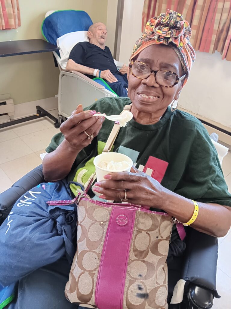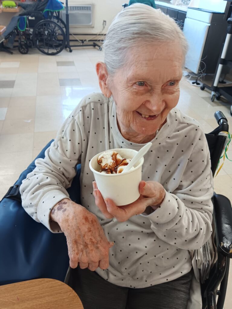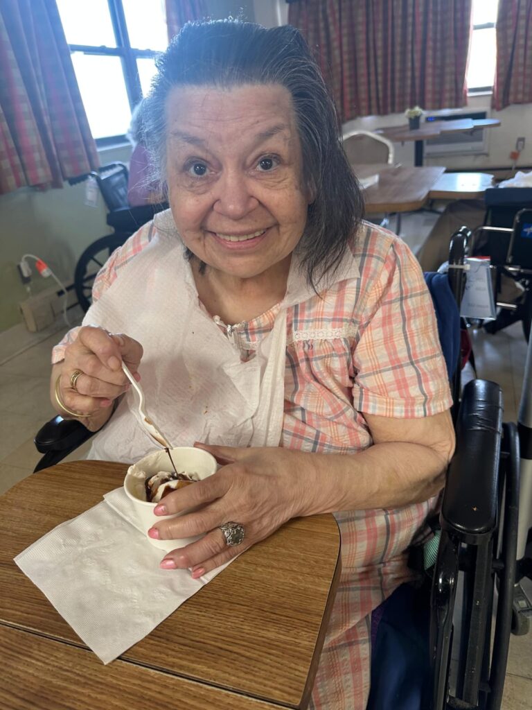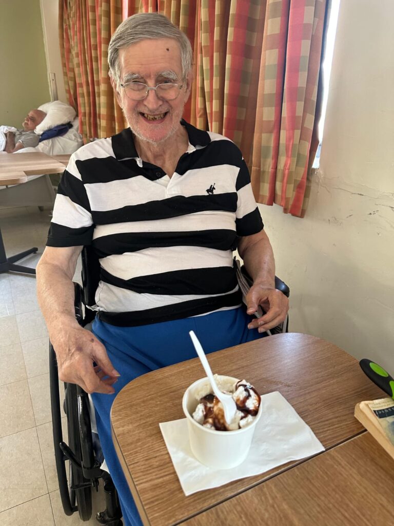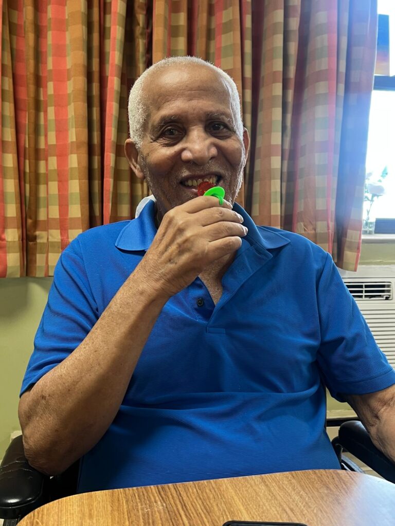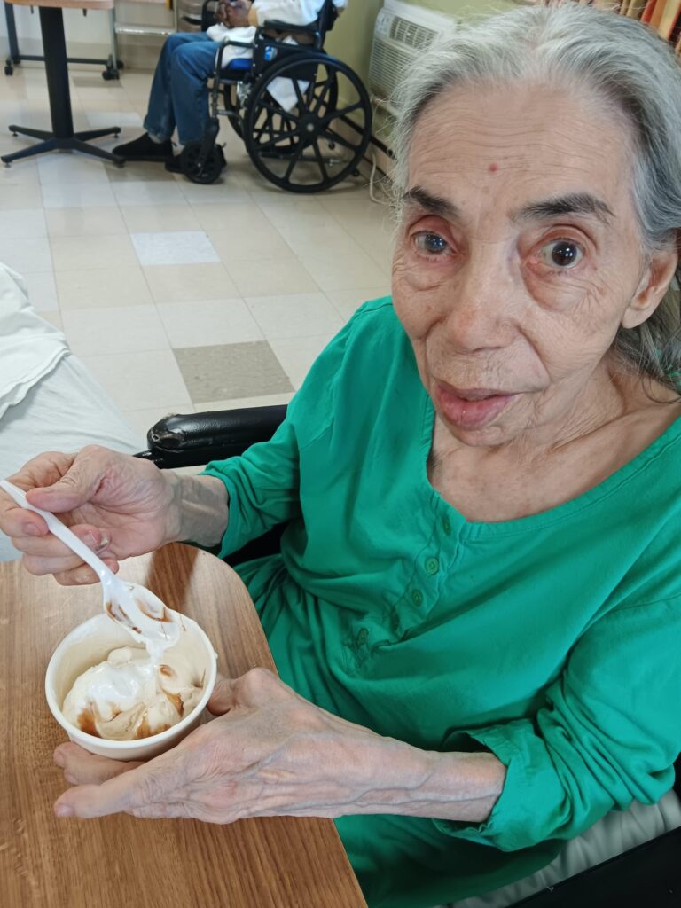 Back inside the facility, a playful Ring Pop sugar rush added color and fun to the afternoon, followed by a delightful food delight of ice cream and desserts that residents enjoyed together. The day came to a beautiful close with a violin stroll through the halls, filling the building with calm, uplifting music. It was a perfect reminder that simple joys, whether outdoors in the park or within the community, make life at Fort Tryon so meaningful.