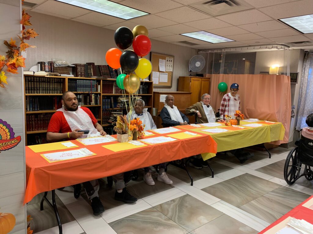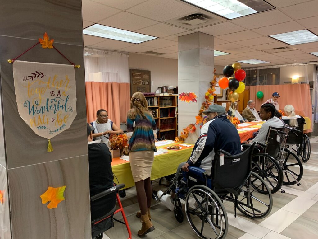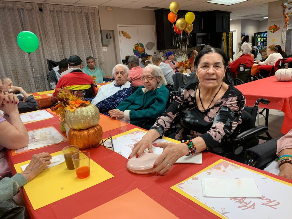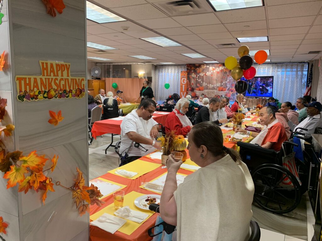 Yesterday’s Thanksgiving Luncheon was a smashing success! The residents were delighted to see the decorated activity room with its orange theme and Thanksgiving decorations. Everyone gathered and shared a cozy lunch served by the staff, filling the room with nothing but joyful atmosphere.