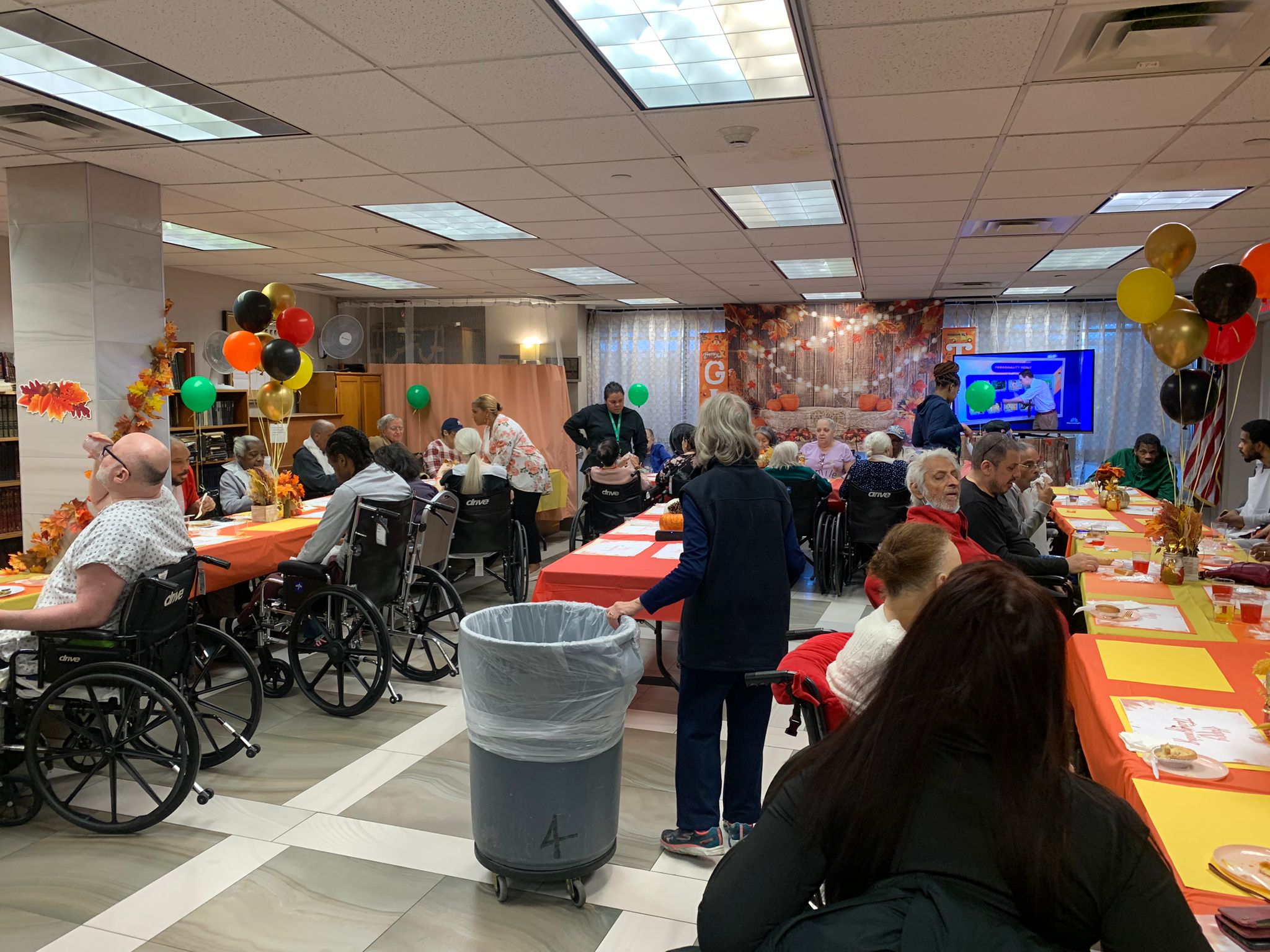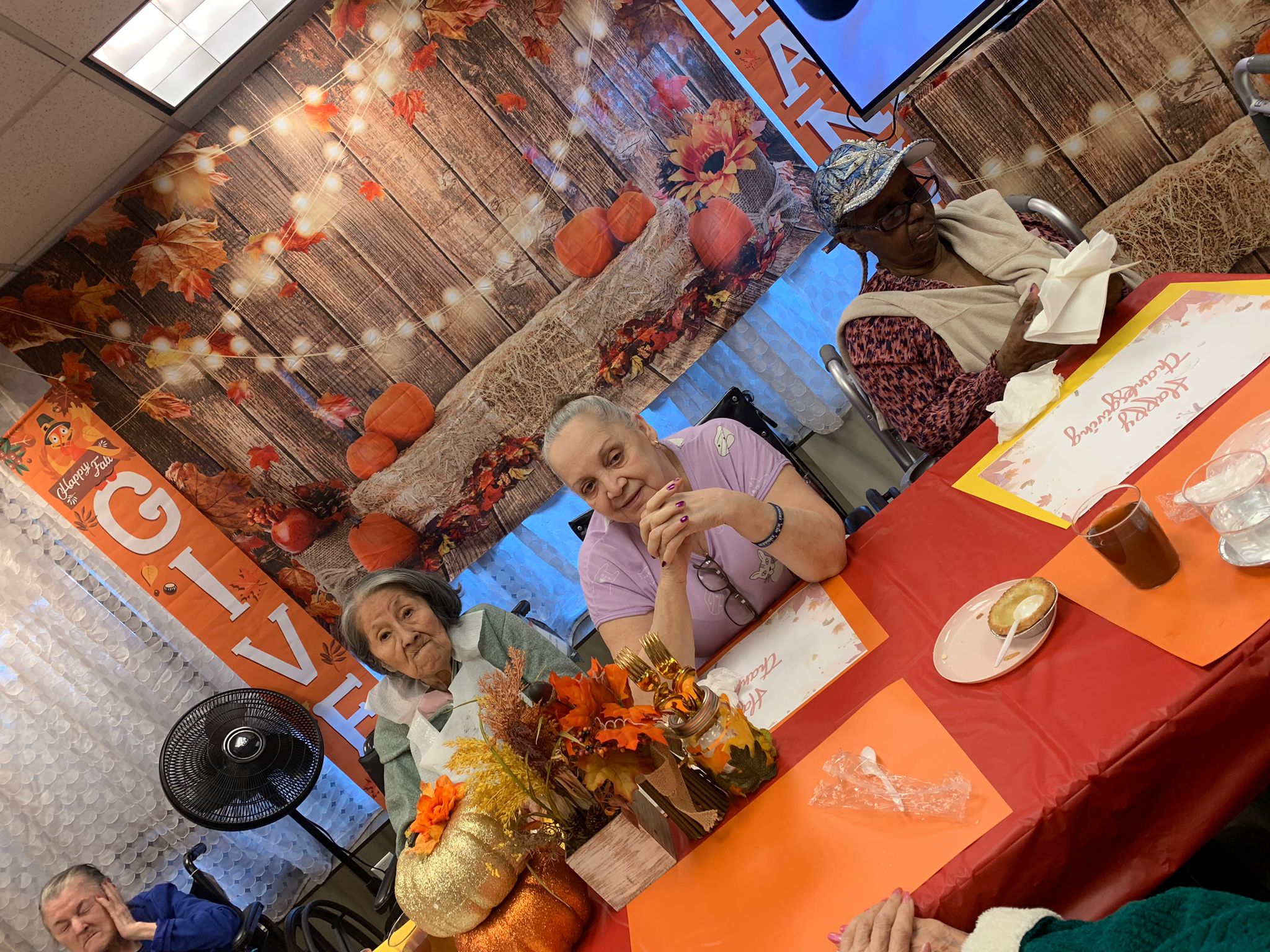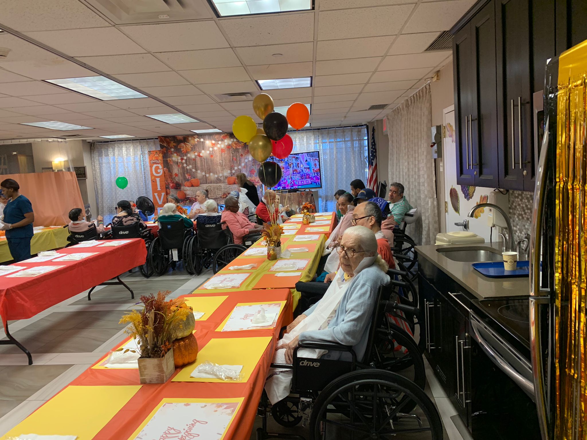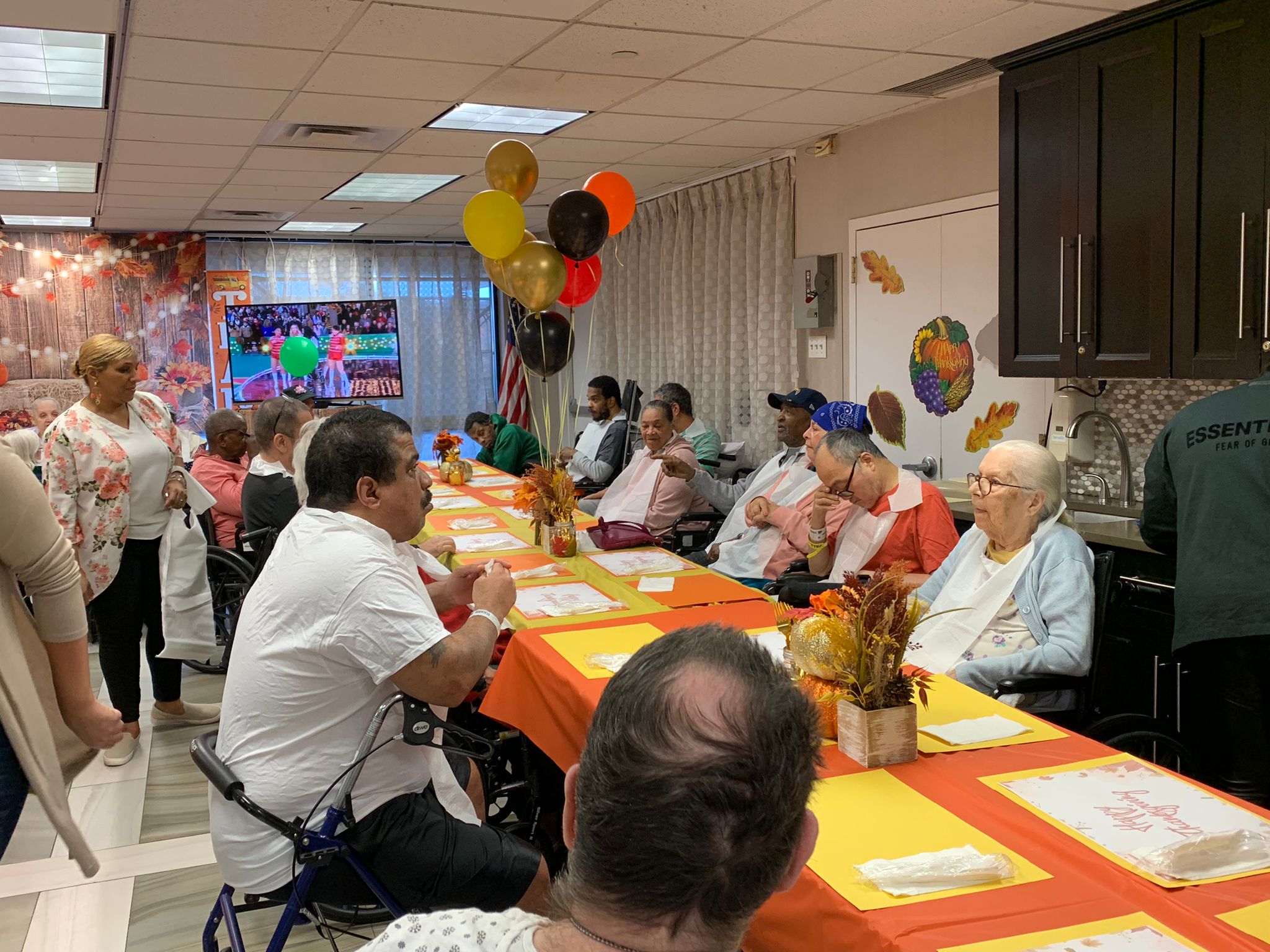 Yesterday’s Thanksgiving Luncheon was a smashing success! The residents were delighted to see the decorated activity room with its orange theme and Thanksgiving decorations. Everyone gathered and shared a cozy lunch served by the staff, filling the room with nothing but joyful atmosphere.